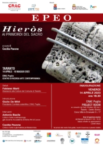 La mostra è promossa e organizzata dal CRAC Puglia, patrocinata da Comune di Taranto, Regione Puglia (Assessorato Cultura, Tutela e Sviluppo Delle Imprese Culturali, Turismo, Sviluppo e Impresa Turistica), in collaborazione con associazioni e istituzioni territoriali e nazionali (Amica Sofia di Perugia, F@MU-Famiglie al museo, Comitato per la qualità della vita, Amici dei Musei, FAI delegazione di Taranto, Tarenti Cives, Ella, Società Dante Alighieri, Marco Motolese e Club per l’UNESCO di Taranto, Gruppo Taranto, Ante Litteram, Contaminazioni). La mostra personale dell’artista presenta una significativa selezione di opere plastico-pittoriche rappresentative della sua poetica. “L’universalità del sacro, la natura come spazio ierofanico primordiale, la trasfigurazione simbolica delle radici archetipiche – scrive in catalogo la curatrice Cecilia Pavone – sono alla base del mito e caratterizzano la poiesis di Epeo. Lo stile icastico dell’artista, contrassegnato dall’impiego di materiali essenziali, in primis pietra e ferro, evoca dimensioni cultuali primitive, riti ancestrali e visioni magico-mitiche, provenienti dalle profondità abissali dell’inconscio collettivo. Permeata da un’intensa valenza simbolica, l’opera di Epeo scaturisce da un legame atavico con la sua terra d’origine, la Calabria, e con il Mare Ionio, identificato nella figura mitica di Leucotea.