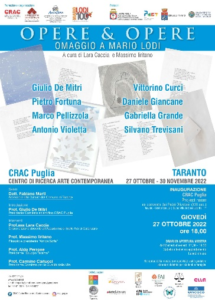 Giovedì 27 ottobre p.v. alle ore 18.00 al CRAC Puglia (Centro di Ricerca Arte Contemporanea) della Fondazione Rocco Spani Onlus avrà luogo, nel nuovo spazio Project room, l’inaugurazione della mostra tra parola e immagine dal titolo “Opere & Opere. Omaggio a Mario Lodi”, a cura di