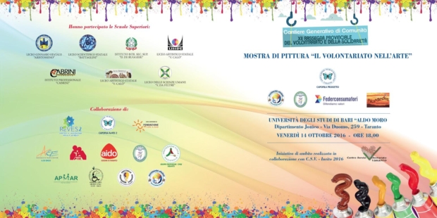 Domani venerdì 14 ottobre alle ore 18:00 presso l’Università di Bari – polo Jonico in via Duomo 259 a Taranto la XII Rassegna provinciale del Volontariato e della Solidarietà si aprirà con l’inaugurazione della ...
