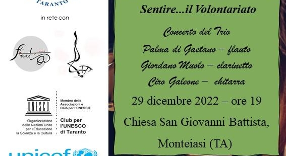 29 Dicembre 2022 “Sentire …il Volontariato”, un nuovo progetto proposto da Club per l’Unesco Taranto e Associazione Culturale “Marco Motolese” in partnership con @Associazione Flart, Gruppo Anonimo ...