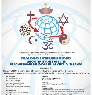 17 dicembre 2022 Una manifestazione culturale organizzata dal Club per l’UNESCO di Taranto, di grande interesse si è svolta oggi nella sala convegni del Dipartimento Jonico in via Duomo. Si è parlato di Diritti Umani e di dialogo ...